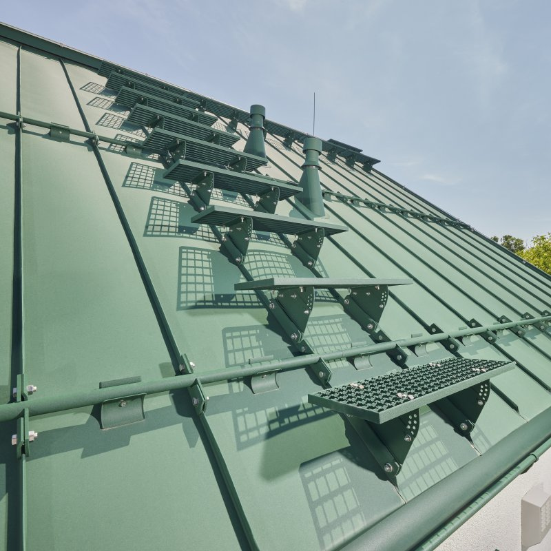 | Popis produktu | Pre pohyb po strešnej krytine vyrábame hned niekoľko druhov strešných schodov. Tento má možnosť prispôsobiť uhol schodu k sklonu strešnej krytiny FALZ od 12° do 45°. Dodávaný je v rôznych farbách a povrchových prevedeniach, podľa použitej krytiny. Určený je na uchytenie priamo na falzový spoj. |
