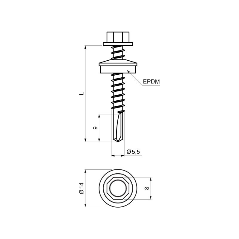 | Popis produktu | Samovrtná pozinkovaná skrutka pre upevnenie profilovaných konštrukčných oceľových plechov na tenkostenné oceľové konštrukcie. Vyrábaná v rôznych dĺžkach podľa určenia a farby krytiny. Dodávaná s EPDM podložkou pre lepšie tesnenie. |