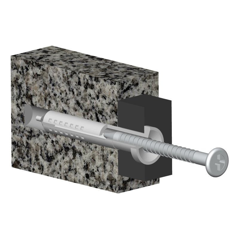| Popis produktu | Natĺkacia hmoždinka (Don Quichotte) do plnostenných stavebných materiálov (plná tehla, betón, kameň) so zápustnou hlavou tŕňa a kónickým tvarom goliera hmoždinky. |