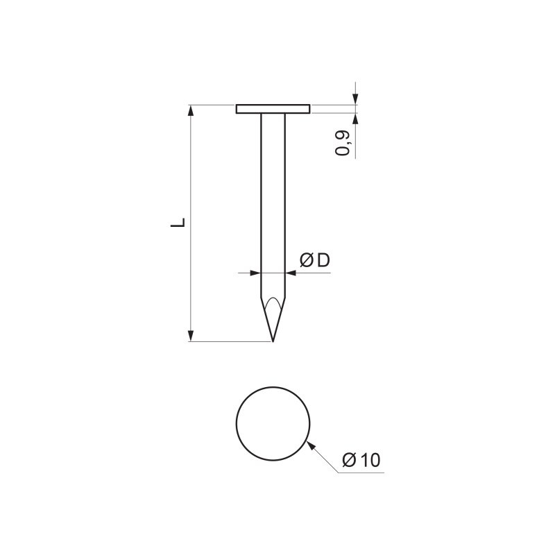 | Popis produktu | Klinec lepenkový je určený na pripevnenie tenkých materiálov k dreveným podkladovým konštrukciám. Široká hlava o priemere 10 mm zabraňuje vytrhnutiu materiálu. |